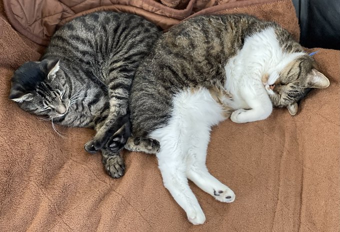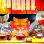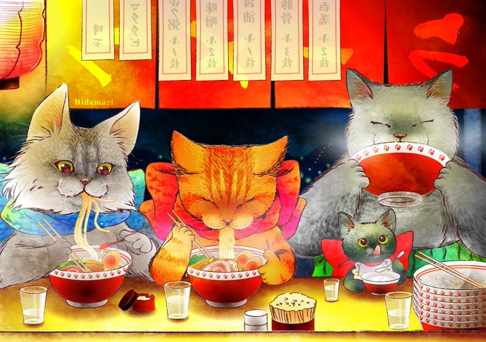 『冬の夜はラーメン』 ズゾゾッ! 茶太郎「味玉追加して良かったにゃ…にゃむ…」 ちゅるっ! レオ「ニンニク追加…」 ズズズズッ! 銀太「……親父…やっぱり、おかわり」 あいよ! 銀太「サチ、美味いか?」 サチ「うみゃ!」 銀太「そうか」 #絵柄が好みって人にフォローされたい #猫 #ぬこ
