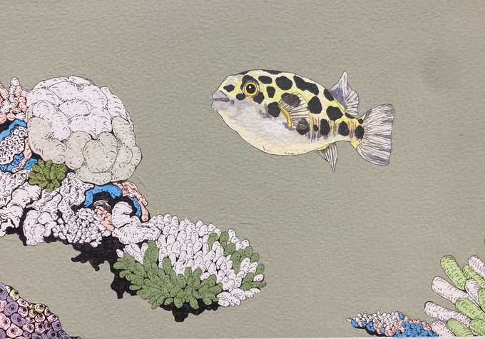 【 はこふぐ 】 まんまるで可愛いはこふぐ🐡 【 個展”sign” 】 Gallery House MAYAさん。 7月18日(月) 〜23日(土) #galleryhousemaya #ギャラリーハウスマヤ #展示 #個展 #illustration #illustrator #sign #イラスト #イラストレーション #fish #魚 #sea #はこふぐ