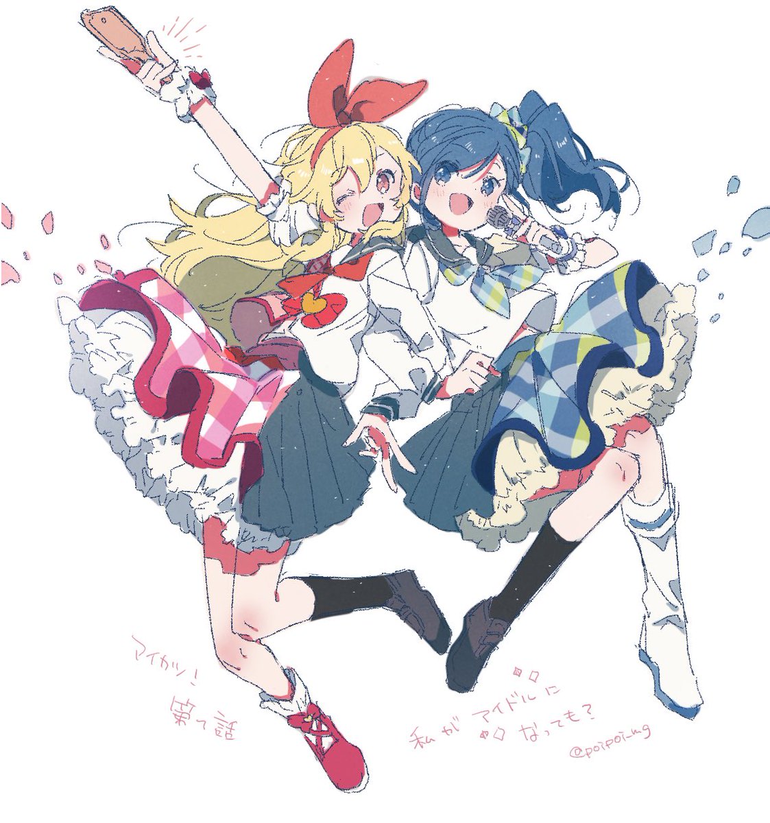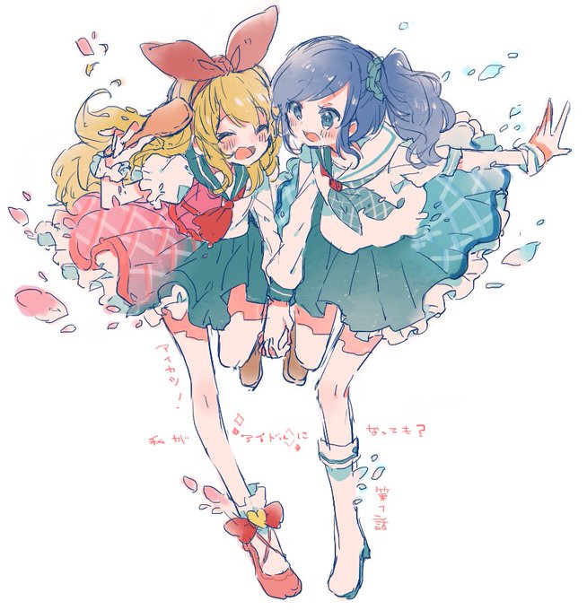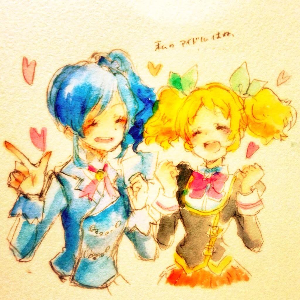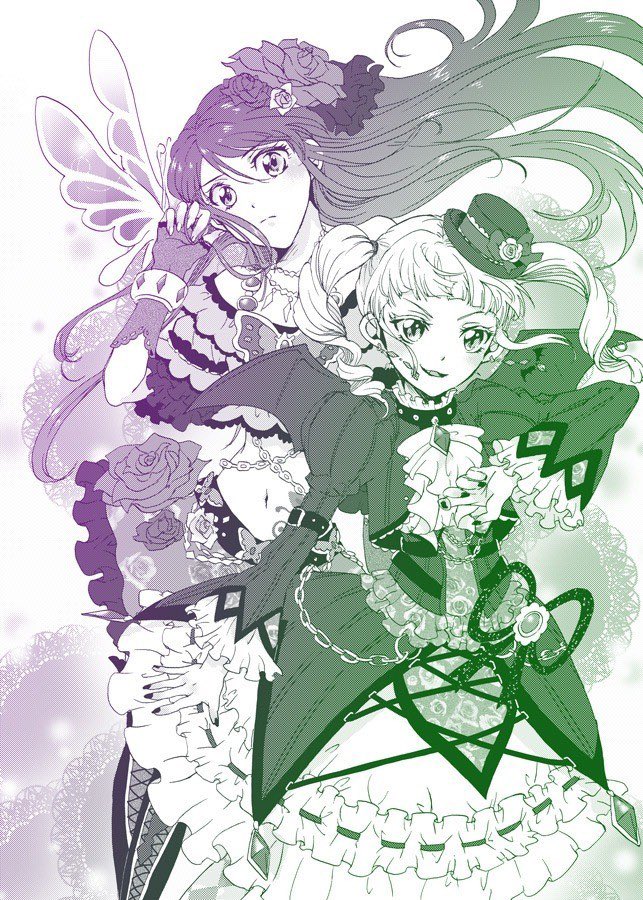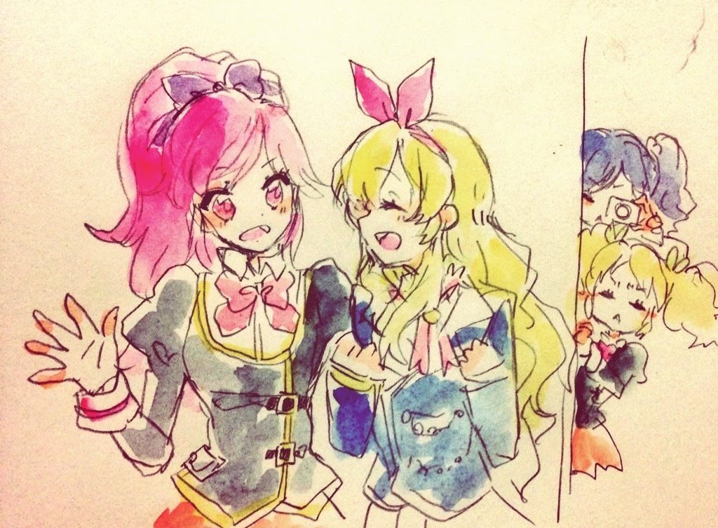 #はじめて描いたアイカツ絵 アイカツ!9周年おめでとう〜!! はじめて描いた絵が左で今の絵で同じ雰囲気で描いたよ〜(確か2年くらいハマってます!) いちごちゃんとあおいちゃんは最高🍓🎤