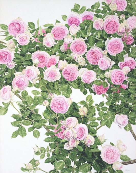 #今までで作画カロリーMAXの作品上げようぜ F-50号1100×910 リキテックス お花は半年位で仕上がったけれど葉っぱかね~800枚位あって葉っぱだけで一年半毎日葉っぱ描いてた。🌿 #ばらの絵 #リキテックス #ピエールドロンサール
