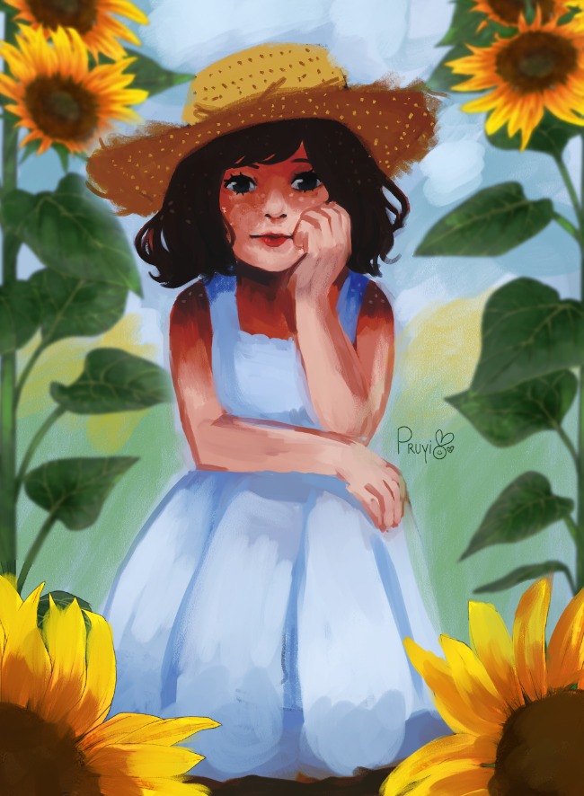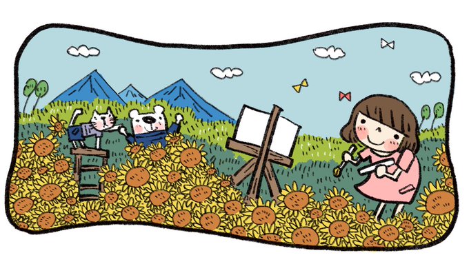 ひまわり畑に散歩します ひまわりに囲まれて 暖かい太陽がたくさんあるように 夏の夜空を照らす🌻 #illustraion #art #artwork #Illustrator #ひまわり #絵描き #絵描きさんとつながりたい #絵画 #イラスト #絵本 #芸術の輪 #芸術