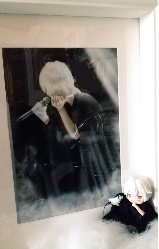 まふまふさんが、紅白に出場してから約1年!本当にかっこいいし、素敵だし感動したので、1年記念でねんどろいどで再現してみた!せっかくなので、私がその時に描いた絵を拡大にして額に入れたら、いい感じになったかも☺️ #まふあーと #まふまふねんどろいど #まふまふ