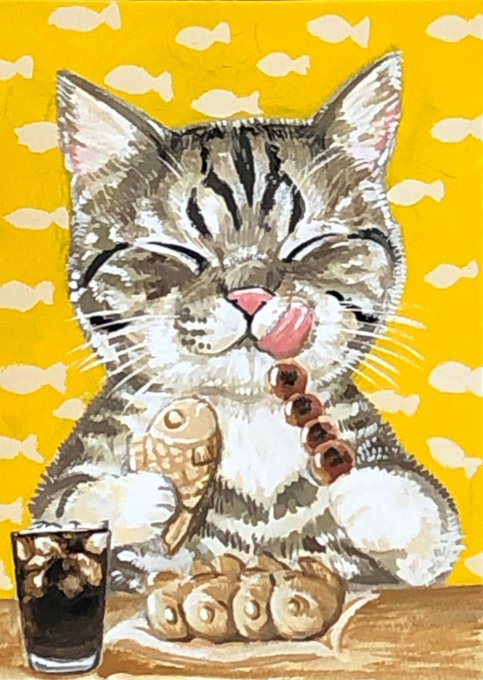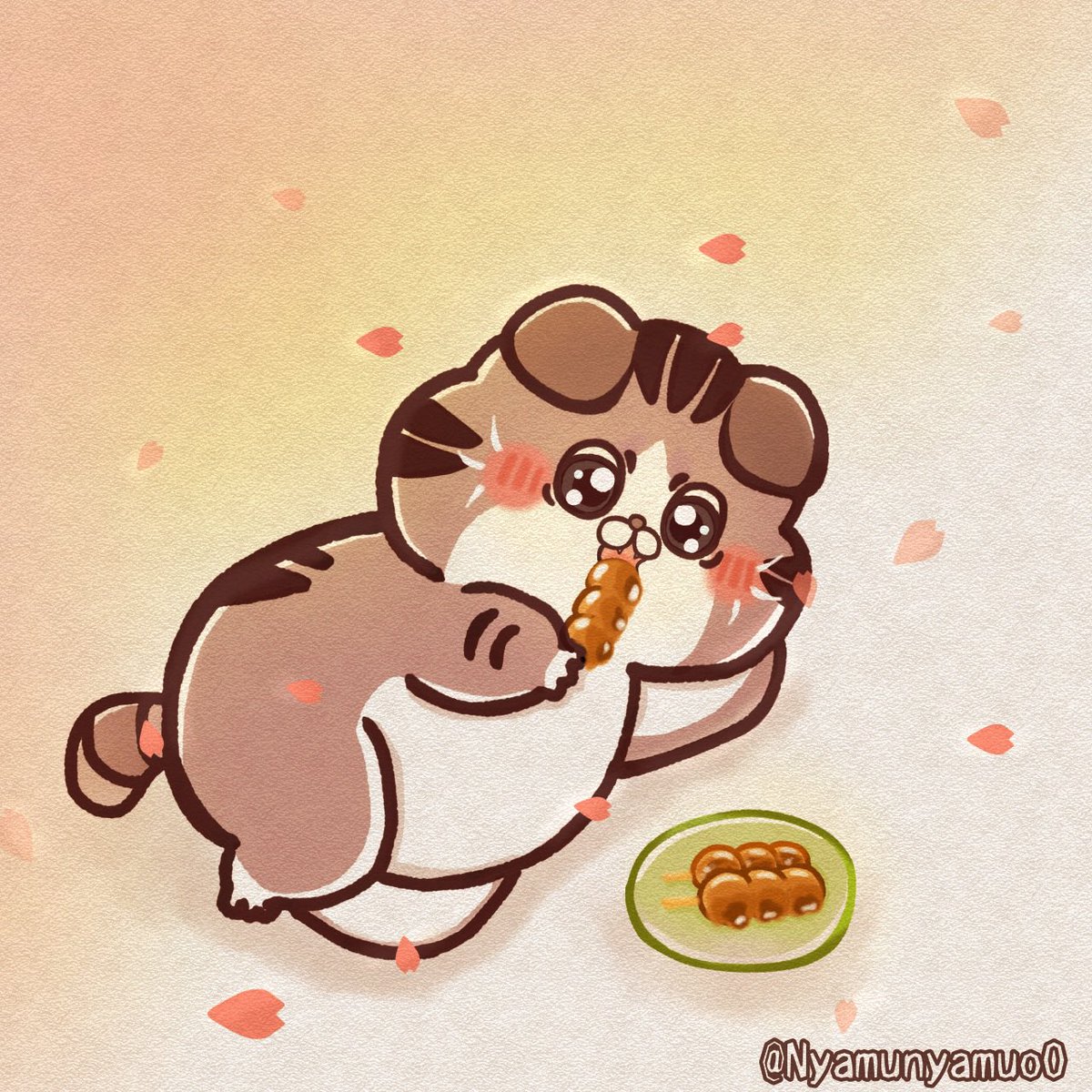 み[3]たらし[4]だんご[5] とのことで 毎月3日,4日,5日は 〚みたらしだんごの日〛🌸🌸 #猫 #イラスト #ゆるいイラスト #みたらし団子 #アトリエの系譜S #みんなで楽しむTwitter展覧会 #イラスト好きな人と繋がりたい