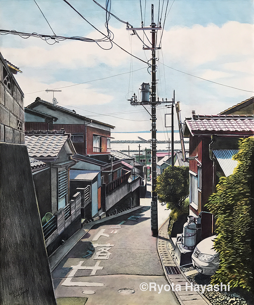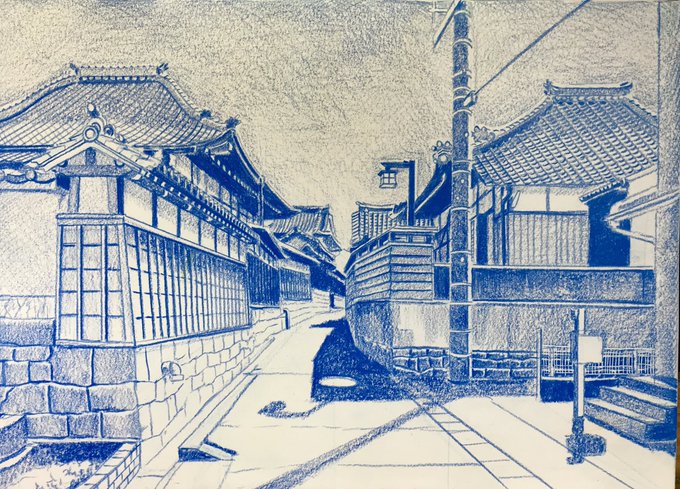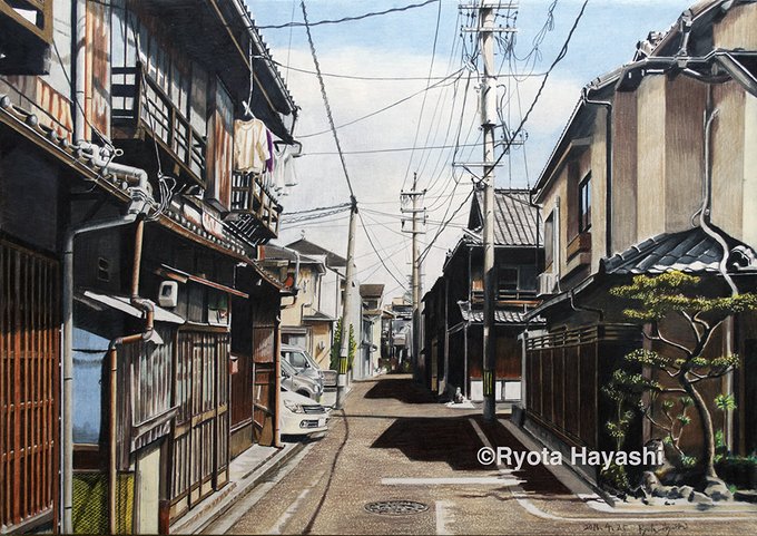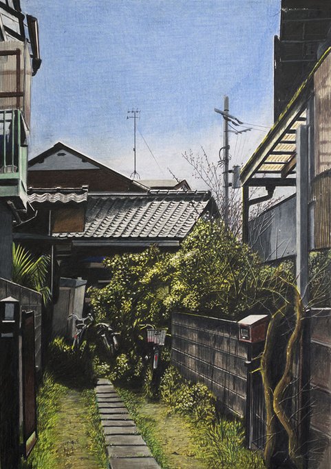 時の道 名古屋市西区/色鉛筆(カリスマカラー)/2016年4月/A2(KMKケント紙)/瓦屋根のある風景 その16。 場所は名古屋駅からほど近く。古い町並みの残る一角。春の日差しに瓦屋根。 #色鉛筆画 #林亮太 #風景画 #みんなで色鉛筆イラスト見せ合おうよ ryota884.thebase.in/items/59041557