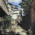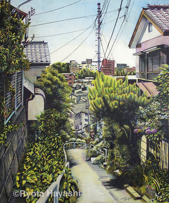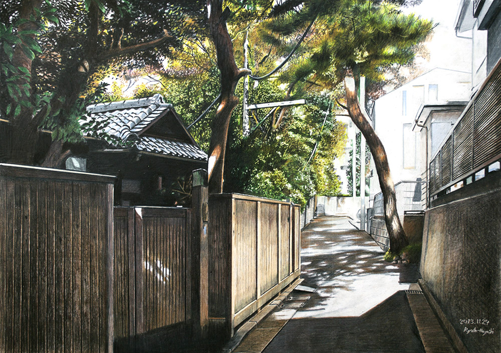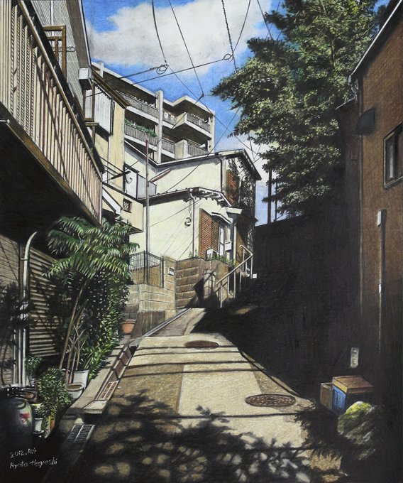日だまりの急坂 新座市新座/色鉛筆(カリスマカラー)/2012年10月/F8(muse KMKケント紙)/木漏れ日の風景 その8 住宅街の急坂は木漏れ日に彩られて。 #色鉛筆画 #林亮太 #風景画 #みんなで色鉛筆イラスト見せ合おうよ ryota-hayashi.com/?p=380 ryota884.thebase.in/items/43576141