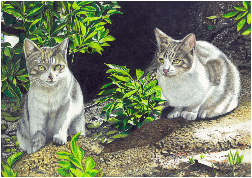 静寂 新宿区内藤町/色鉛筆(カリスマカラー)/2013年11月/B3(KMKケント紙)/瓦屋根のある風景 その11。 交通量ある外苑西通りの脇にも係わらず静かな佇まい。日射しに輝く緑と瓦屋根が美しく。 #色鉛筆画 #林亮太 #風景画 #みんなで色鉛筆イラスト見せ合おうよ ryota-hayashi.com/?p=704