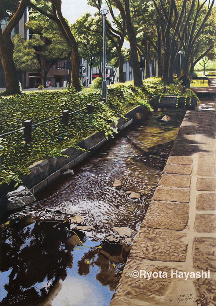 Water Colors 練馬区石神井台/色鉛筆(カリスマカラー)/2017年5月/F15(KMKケント紙)/水流の風景 その8 石神井公園の三宝寺池。滾々と湧き出る水流が緑と響き合い。ryota-hayashi.com/?p=1769 #色鉛筆画 #林亮太 #風景画 #みんなで色鉛筆イラスト見せ合おうよ