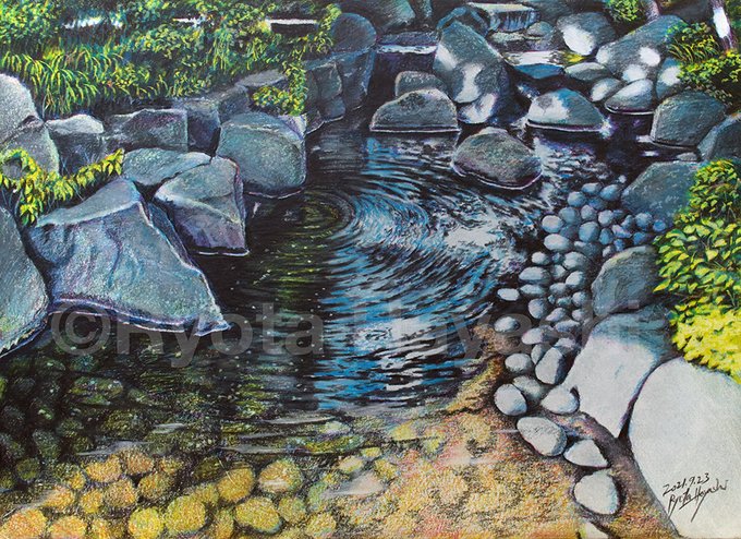 33 1/3 r.p.m/色鉛筆(カリスマカラー)/2021年9月/F4(muse Do artペーパー紙)/水流の風景 その15 公園の湧き出る水流。まるでLPレコードのように音を奏で。 #色鉛筆画 #林亮太 #風景画 #みんなで色鉛筆イラスト見せ合おうよ ryota-hayashi.com/?p=2809 ryota884.thebase.in/items/52673092