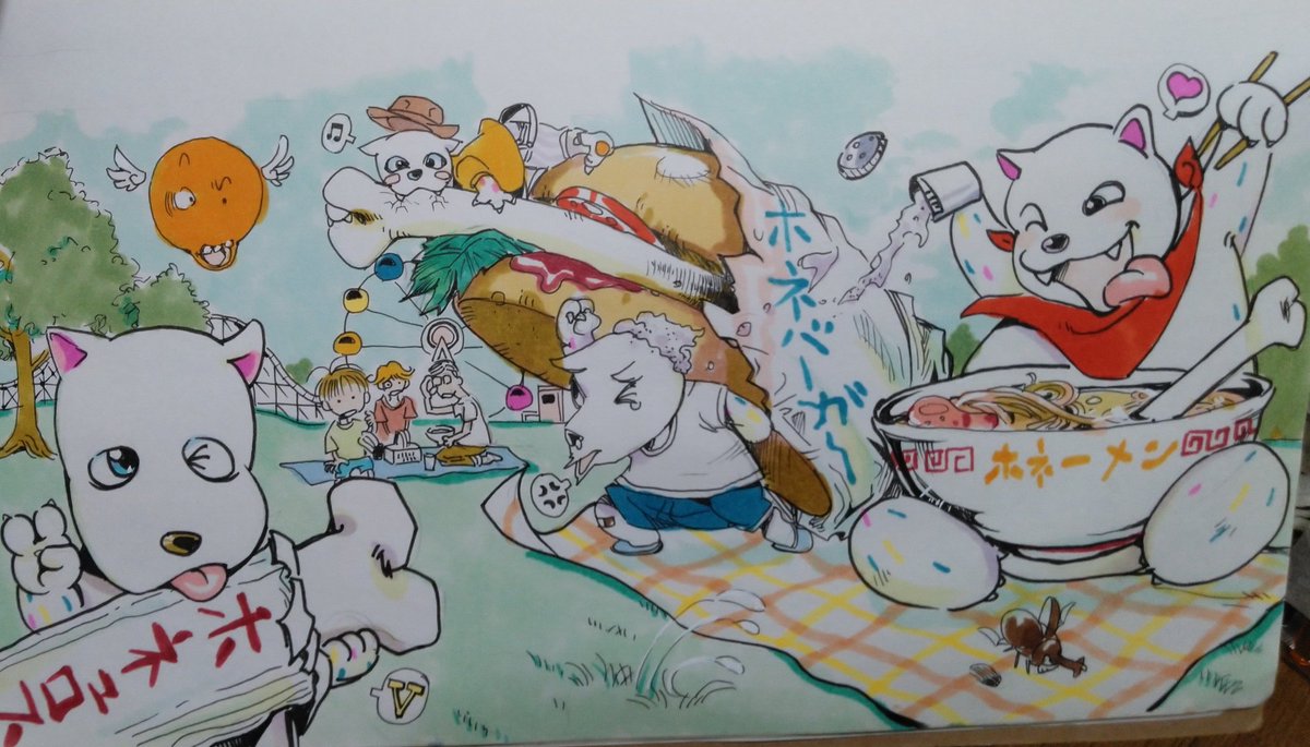 #よみうりランド お越しの #沖縄WEEK2023 に参加のみなさん、8日目おつかれさまでした! 明日は最終日、最後まで全力で楽しんでまいりましょう! 家であまりに退屈だっ(ry 訪れた5月5日が #こどもの日 だったので3人がこどもこどもしてる絵を🎏 #リミカン #真ん中は多分本気 #リミカンイラスト課