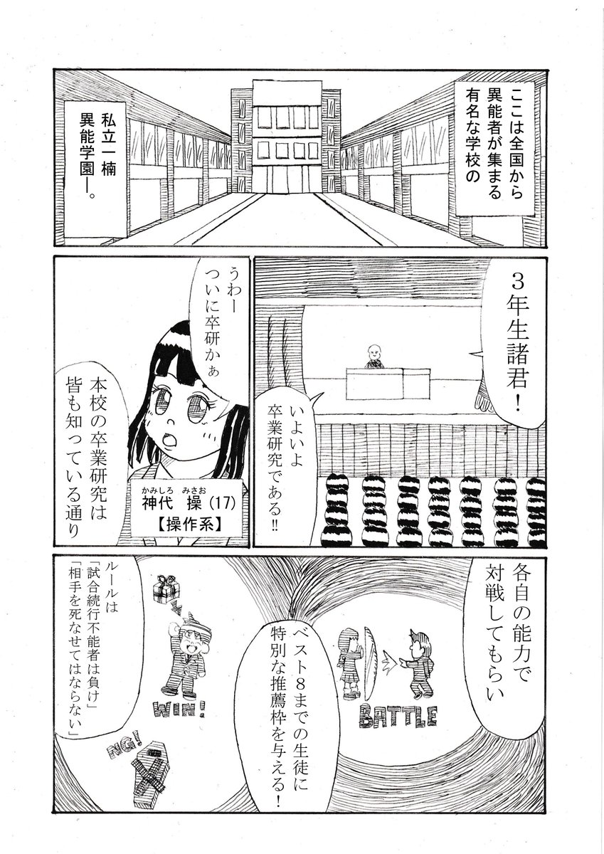 【創作漫画】私立一楠異能学園 -DOLL MASTER-( 1/3, 全10ページ ) 昨年5月、pixivのコンテスト用に描いた漫画。 テーマが異能学園だったので、異能バトルをやりたかったのです。 #漫画が読めるハッシュタグ #創作漫画 #わたりゅう創作漫画 #絵描きさんと繫がりたい