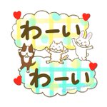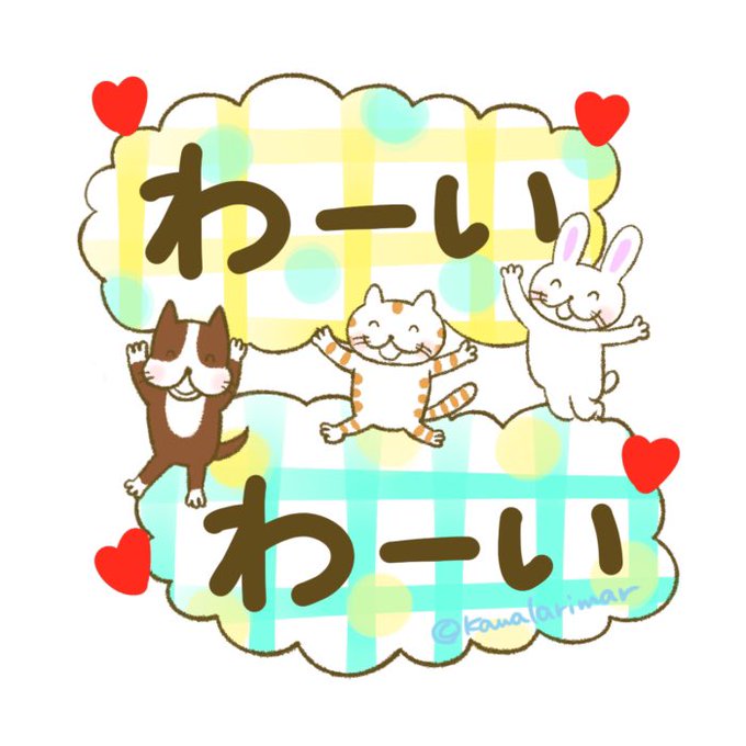 「わーい、わーい」友達とバッタリ遭遇。思いがけず会えるとテンション上がりますね。 ※こちらのスタンプは【毎日使えるデカ文字】に入っています #LINEスタンプ キュートな仲良しトリオ line.me/S/sticker/2008… カワラリマーショップ #suzuri suzuri.jp/kawalarimar/om… #わーい #イラスト #仲良し