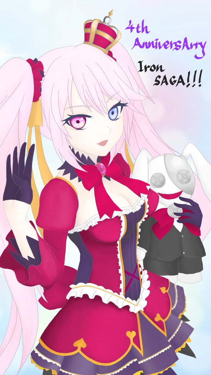 ようやく完成…あれやこれやと悩みに悩んでたら時間ばっかり経ってましたね(;´д`)出来映えはともかく、愛はめっちゃ込めてます あいらぶアイサガ。今までもこれからもずっと大好きです これからもよろしくお願いいたします(*´▽`*) #アイサガ4周年お祝いイラスト #アイアンサーガ