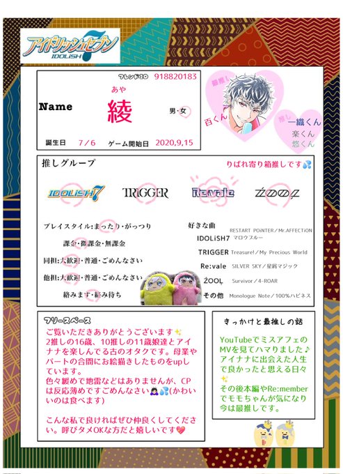 素敵なテンプレをお借りして初めてのお友達探ししてみます☺ 7周年に向けて、さらにその先も末長くアイナナについて語りたいです✨お手数ですが↓にリプいただけたら嬉しいです♪♥🔄も巡ります。無言フォローはそっとお迎えします👍 #アイナナ絵描きさんと繋がりたい #アイナナ好きさんと繋がりたい