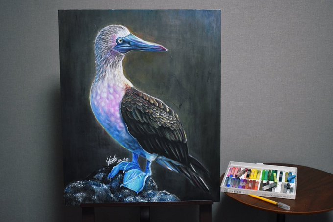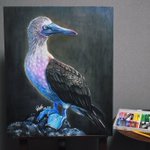 アオアシカツオドリのオイルパステル画 使用画材は オイルパステル、クレヨンコート、タブロー、水彩紙(F15号) です。 メインで使ったのはホルベインのアーチストオイルパステル40色 紙はオリオンのワーグマンです。 #アオアシカツオドリ #絵