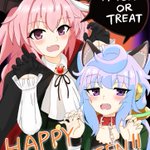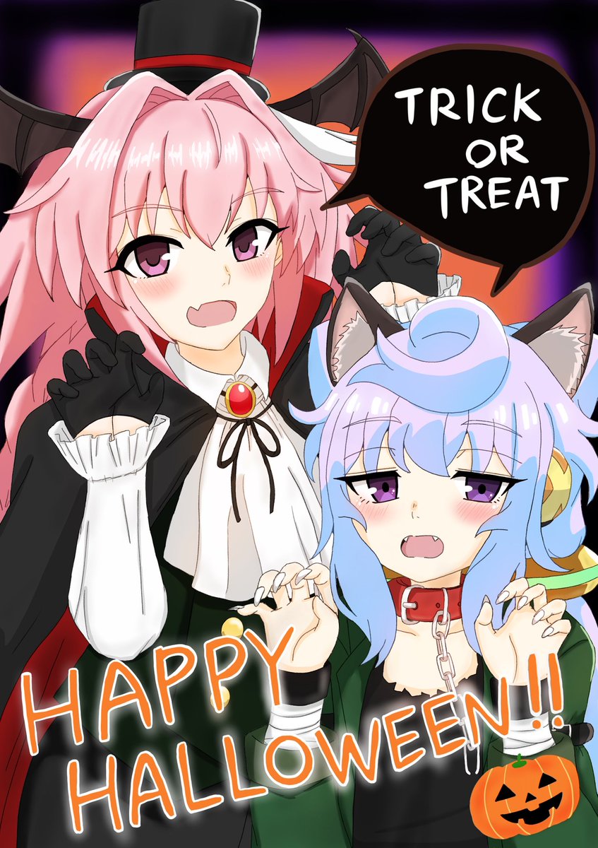 遅くなりましたが、何とか描きました。 アストルフォと3号くんのハロウィン絵です。 一応、ヴァンパイアと狼男(の娘)のコスプレで マスターにサプライズで凸しにきたシチュです。 これはイタズラされるのが、正規ルートな気がします。 #アストルフォ #ハッカドール3号 #halloween2021