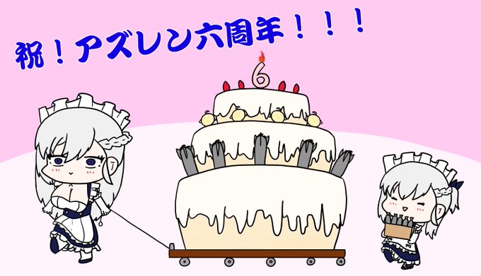 アズレン六周年おめでとうございます!!!🎉🎉🎉 今年はめいどちょーとミニベルちゃん、そしてメイド隊のみんなで作った特大ケーキでお祝いです!!!🎂🎂🎂 #アズレン6周年アート #アズールレーン @azurlane_staff