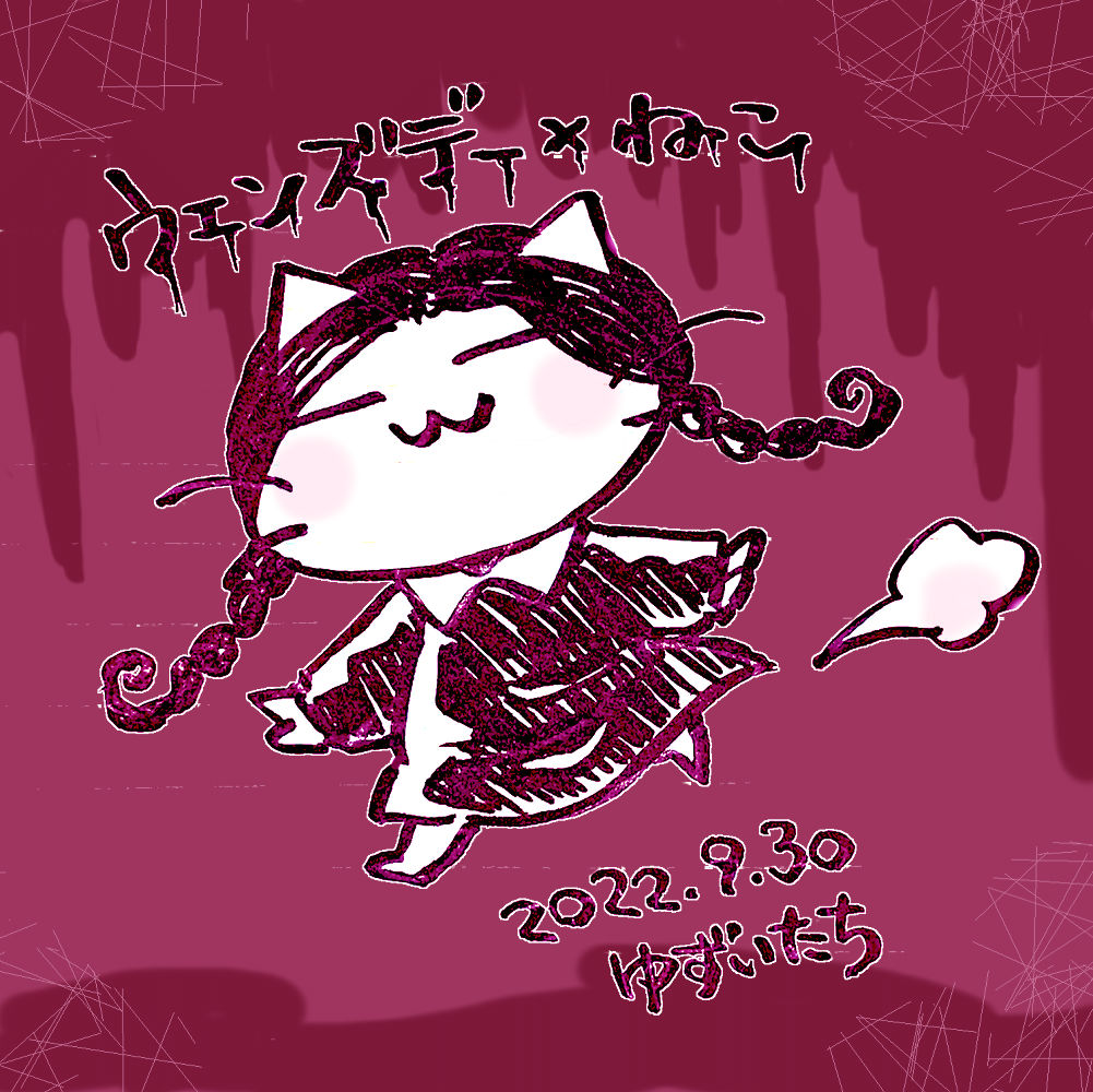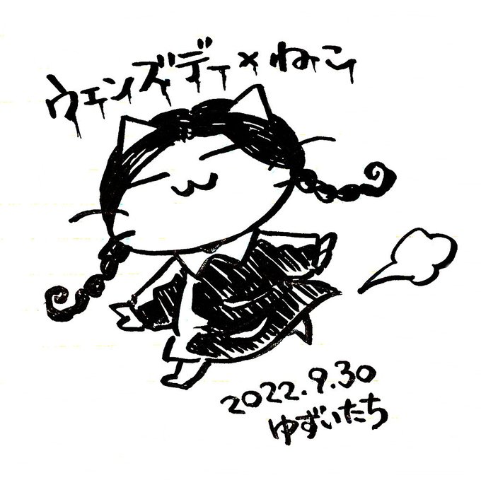ウェンズデーなねこ🐈⬛ 『アダムス・ファミリー』のウェンズデーちゃんが可愛すぎて思わず描いちゃいました(*ノωノ)💕 #アダムスファミリー #ウェンズデー #ねこ絵 #イラスト #ゆるい絵 #絵描きさんと繋がりたい #イラスト好きさんと繋がりたい #絵の世界 #みんなで楽しむTwitter展覧会