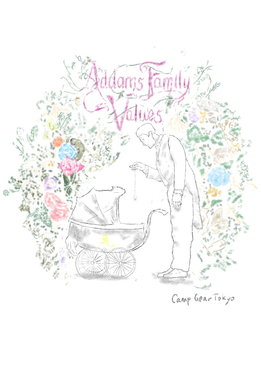 今日の金曜ロードショーはアダムスファミリー2です🎬あのアダムスファミリーに赤ちゃんが!? 今回は暖かく、優しい印象のフラワーリースを添えてみました🌸 #金曜ロードショー #アダムスファミリー #イラスト #ファンアート #フラワーリース #キャンプ #看護師 #campgeartokyo