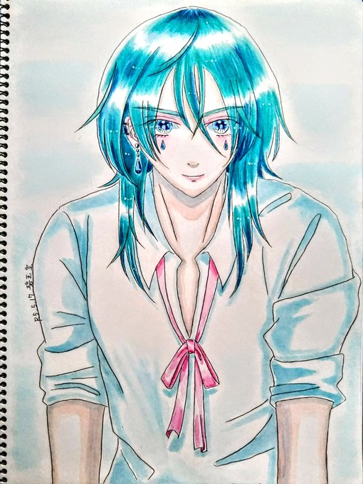 「初音ミク 笑顔〜プリズム」🍎おまけ #アナログ絵で魅せてみよ #初音ミク 4枚目 透明水彩、アクリル絵の具、ポスターカラー、色鉛筆 イラストは約B5 257mm×182mm 🌟デジカメで撮影したものです 少し暗めにうつってるので、先日のスキャナ取込のほうが原画に近いです twitter.com/saiyukako/stat…
