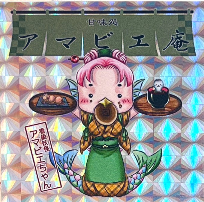 【出店情報】 僕らの妖怪シール展其ノ銃壱 10/27~11/6 12時~18時(最終日~17時) 大怪店 d.quel.jp/7121091 アマビエ庵の看板妖怪アマビエちゃんがシールに成りました! #アマビエ庵 #和菓子 #妖怪和菓子 #妖怪 #NFTartists #僕らの妖怪シール展 #自作シール #イラスト