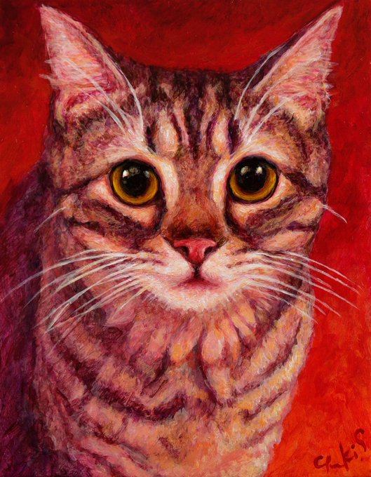 #猫絵 🐈🖼新作です “Early Adolescence” (パネルにアクリル、サイズF0) モデルは #アメリカンショートヘア の男の子😻まだ子猫だけど急速に成長していく頃の猫ちゃんのイメージです😅 #絵描きさんと繋がりたい #猫好きさんと繋がりたい #アナログ絵 #アクリル画 #絵画