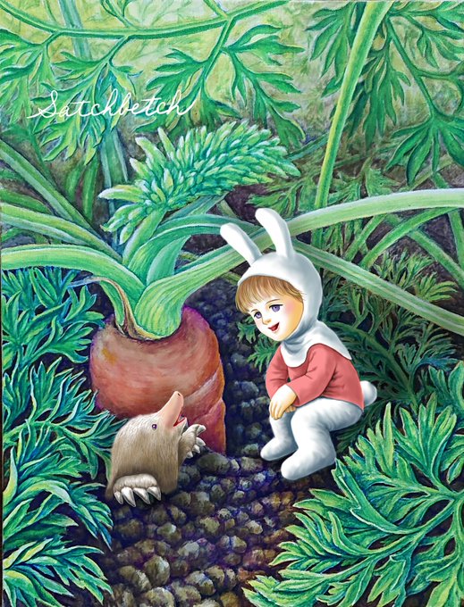 #絵描きさんと繋がりたい #イラスト好きな人と繋がりたい #アトリエの系譜 #みんなで楽しむTwitter展覧会 #創作エネルギー #アートミーム #アートワーク デジタルonアナログ14 モグラくん、人参の出来はどうかな?