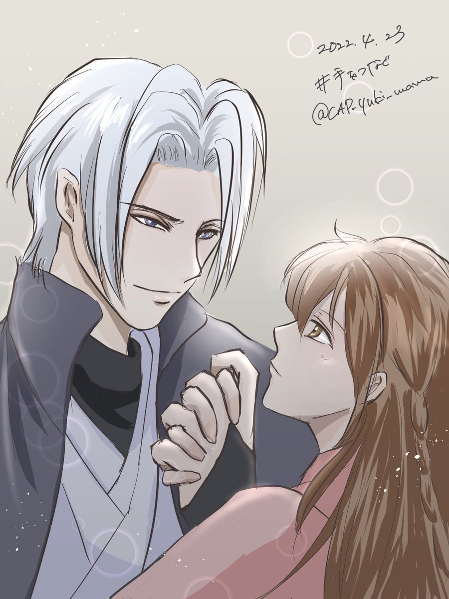 お題『手を繋ぐ→組む*信長&帰蝶』 織田院長 「貴様の論文は見せてもらった。なかなかに面白い視点だ、気に入った」 帰蝶「…恐れ入ります」 (大遅刻陳謝💦) #イケシリ乙版深夜の真剣お絵描き文字書き60分一本勝負 #戦国大学医学部付属病院コレクション