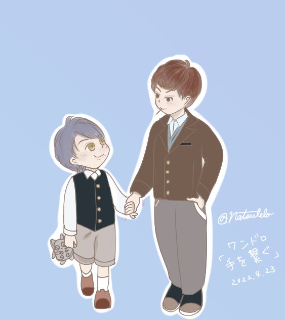 #イケシリ乙版深夜の真剣お絵描き文字書き60分一本勝負 #イケプリFA お題:手を繋ぐ タイトル イケメン王子 ジン&クラヴィス 💜幼少期の2人💙° ✧ (*´ `*) ✧ ° 10分Overです💦