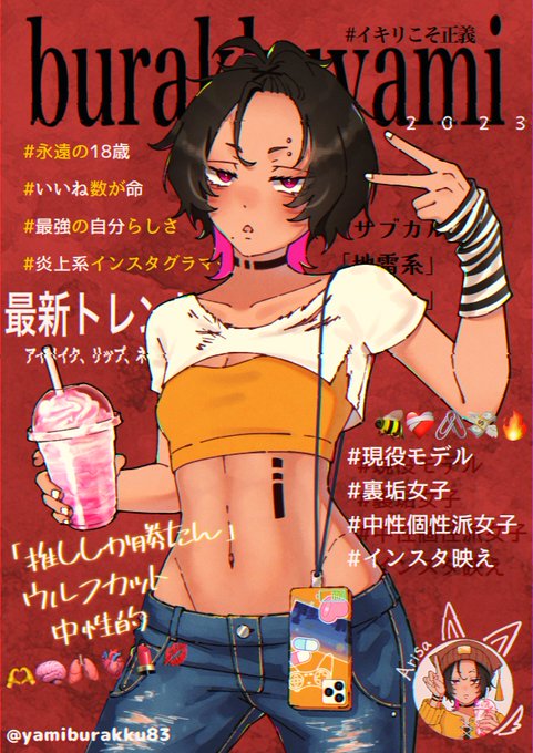 ファッション雑誌の表紙風に描いた! #絵柄が好みって人にフォローされたい #拡散希望RTお願いします #フォローお願いします #アイビス #中性的女子 #ウルフカット #イラスト #インスタ映え #ブラックやみ #絵描き #絵師