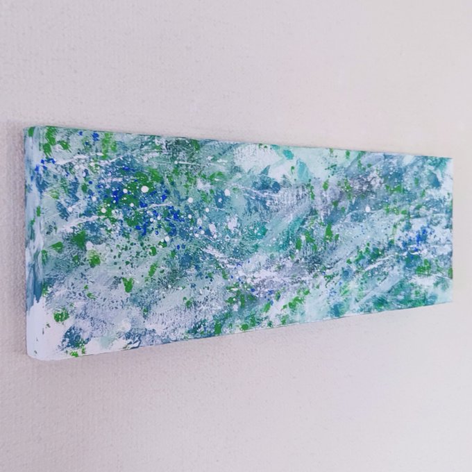 横長の絵を描きました✨ リビングに飾ってほしい作品です。 裏面には壁掛け金具と紐を付けてます。フックも同封して送料無料🎀 #インテリア雑貨 #絵柄が好みって人にフォローされたい #アート #壁 #art 「THE EARTH」大きな抽象画*コルクボードの原画*アートパネル minne.com/items/33388823