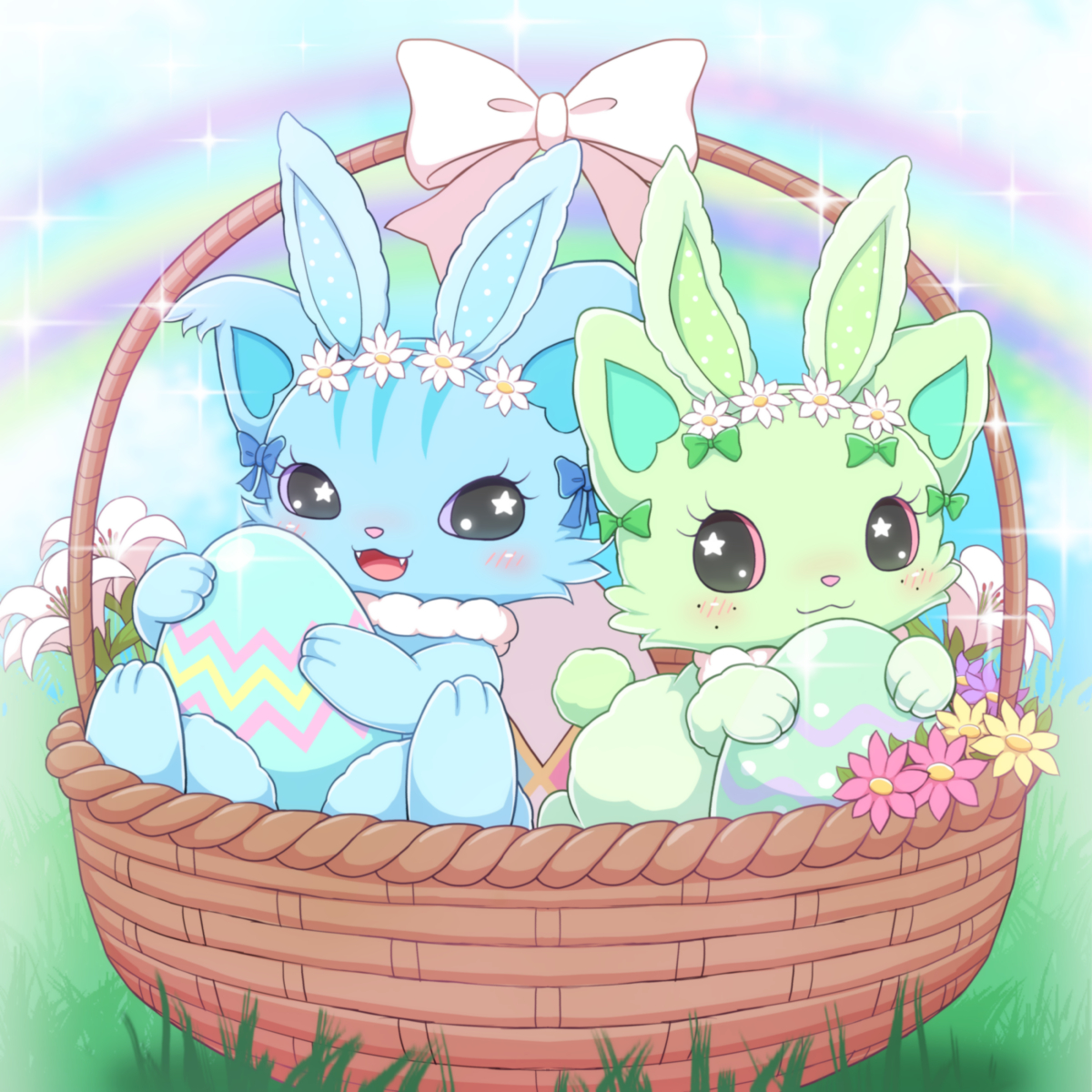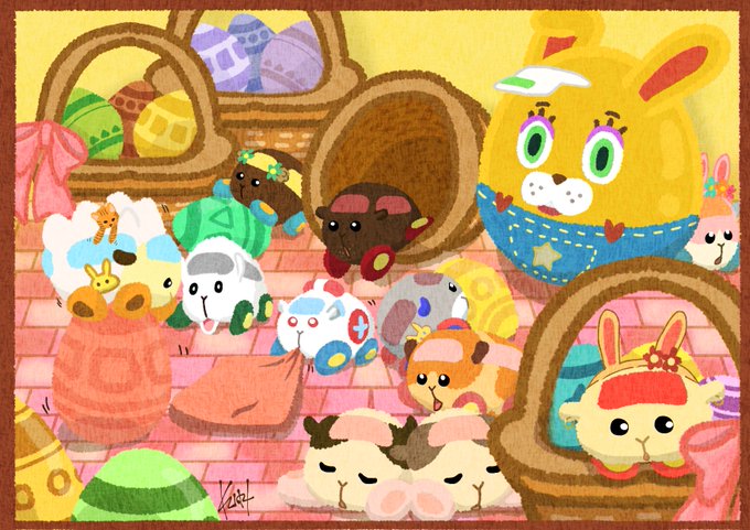 ジッパー&インテロ✍︎*.゚ 遅れ過ぎちゃった感謝祭 イースターイラスト #アリスフレンズ #オリジナルキャラクター #オリキャラ #オリジナルイラスト #ゆるいイラスト #創作 #イラスト #art #illustration #Illust #どうぶつ #ibisPaint #うさぎ #猫 #どうぶつ #イースター #EasterEggs #感謝祭 #卵