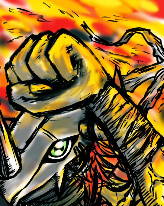 『これが俺たちの、最後の進化だ!』 【イラストメイキング】 →youtu.be/9-f6vVJAKj0 #美術の時間 #デジモンアドベンチャー #八神太一 #ウォーグレイモン #コピックイラスト