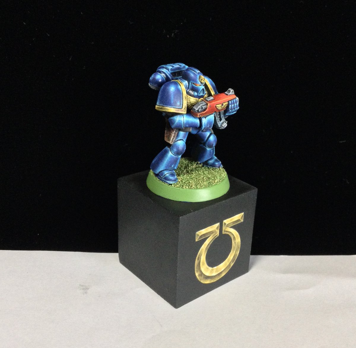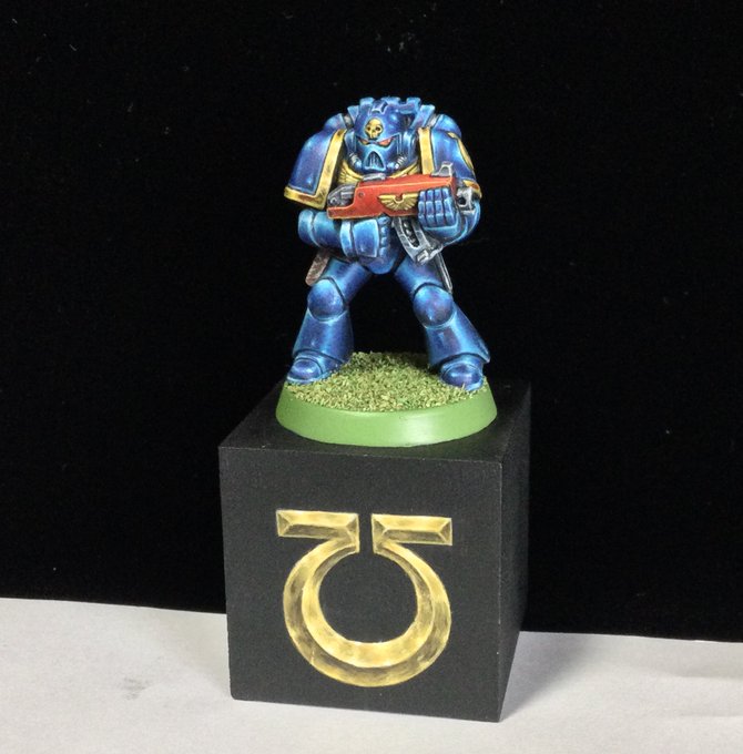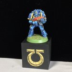 Project Spacemarine 1993 completed. ミニチュア本体はNMMで、ベースは昔のノスタルジックスタイルで、土台にはフリーハンドでアイコン描いてみました。 1週間で遊べるだけの要素を詰め込んだ、楽しいプロジェクトでした。 #WarhammerCommunity #ウォーハンマー