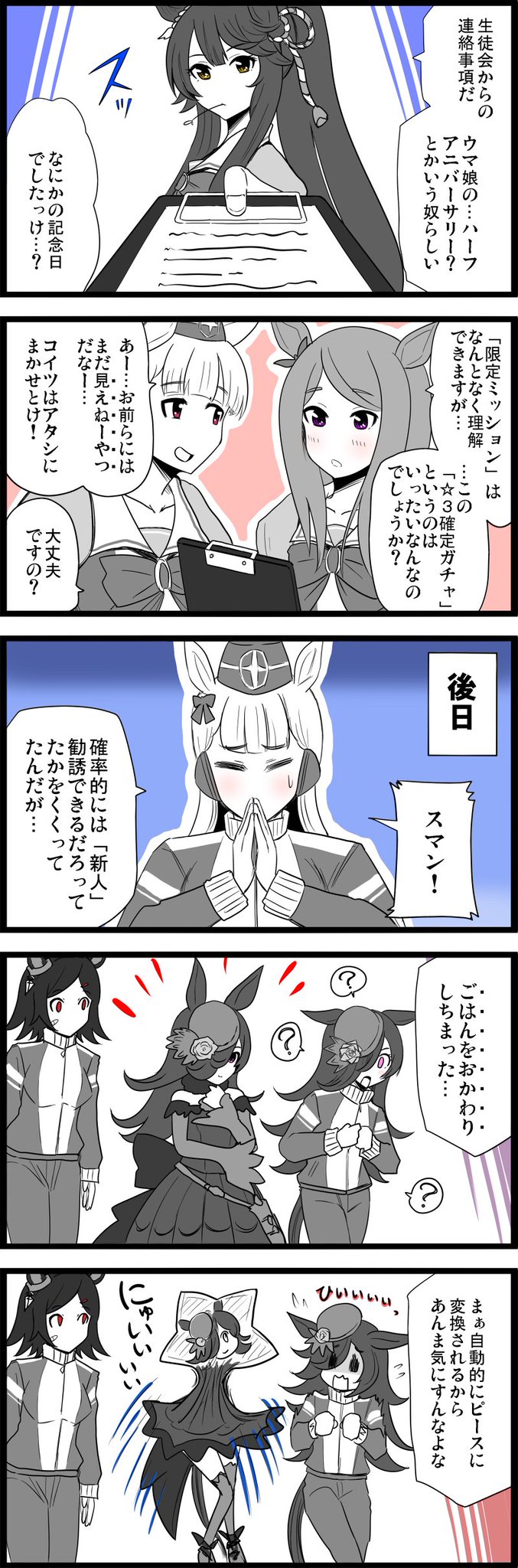 ゴルシ「せっかくのお祝いなんだからド派手に行こうぜ!!!トレーナーも乗り込め!!!!!」 マックイーン「サービス終了させるつもりですか!?」 #ウマ娘ハーフアニバーサリー #ハーフアニバーサリーだからお気に入りのウマ娘イラストを見てくれ
