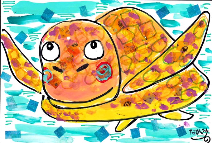 ふぅ・・・なんとか描きあげたぞ・・・。 チンアナゴさん、結構気に入ってます。 このイラストは「どうぶつ展」に出すので、ぜひ遊びに来てくださいね😊 #イラスト好きな人と繋がりたい #イラスト #ウミガメ