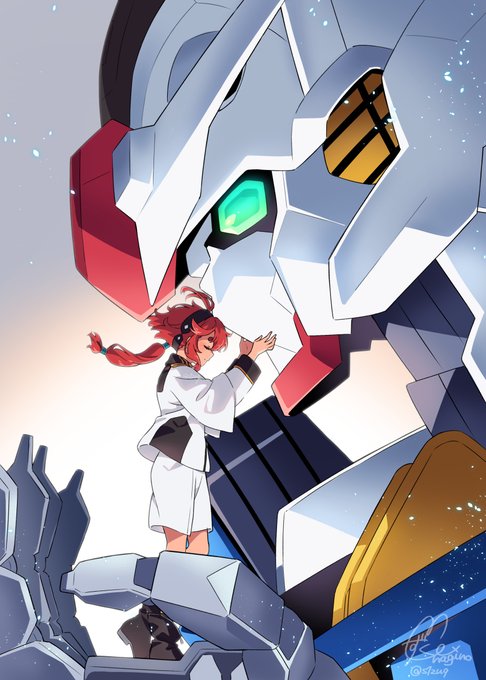 スレッタとエアリアル改修型 Suletta and Aerial Rebuild #水星の魔女 #スレッタ・マーキュリー #エアリアル #G_Witch #イラスト #絵 #gundamwitchfrommercury #gundamfanart