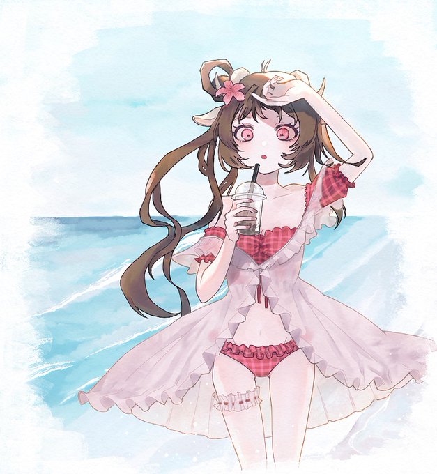 #アークナイツ #明日方舟 #Arknights #アークナイツファンアート #アークナイツ_ファンアート #エイヤフィヤトラ #水着 アークナイツ絵42枚目 涼し気に揺れる Pixiv→pixiv.net/artworks/92392…