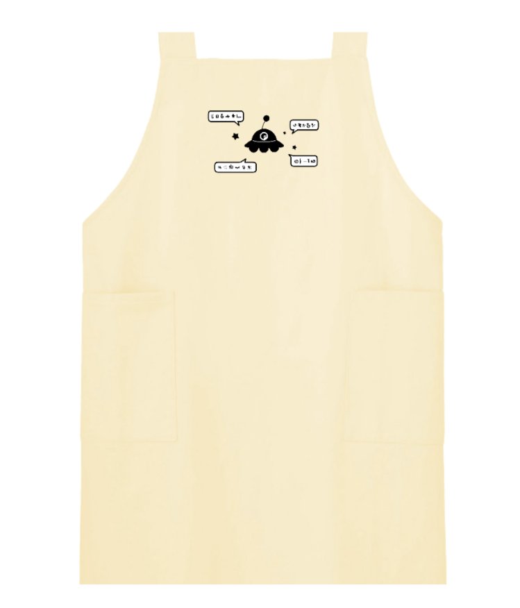 オリラボからエプロンの紹介です! よく喋るUFO H型エプロン market.orilab.jp/item/6066070ec… #オリラボ #オリラボマーケット #イラスト #UFO #宇宙 #エプロン