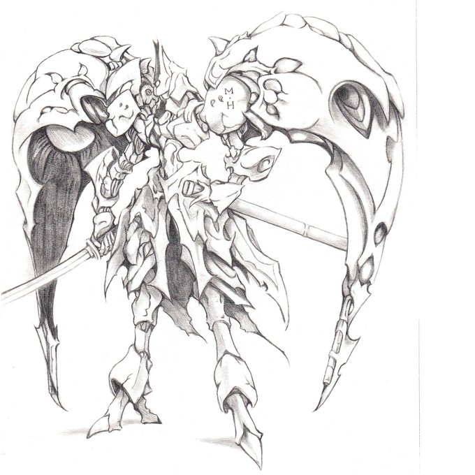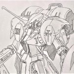 雨でお客さんが全く来ないので落書き三昧ww メニューはムック本の表紙を飾ったブラッドテンプルNo.3の正面図。 改装されたMkⅡとは耳に当たる部位の形状など微妙に違ってるみたいで正面から見るとこんな感じ? バランス難しい😅 #エルガイム #ファイブスター物語