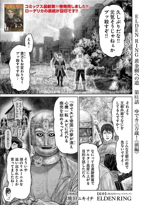 というわけで 本日「ELDEN RING」黄金樹への道 81話(前編)が更新です!ページ数少なくなって おりますがよろしくお願いします!!🙇 最新刊11巻も発売中です!! #エルデンリング #ELDENRING ■コミックウォーカー:comic-walker.com/detail/KC_0026… ■English:comic-walker.com/detail/KC_0053…