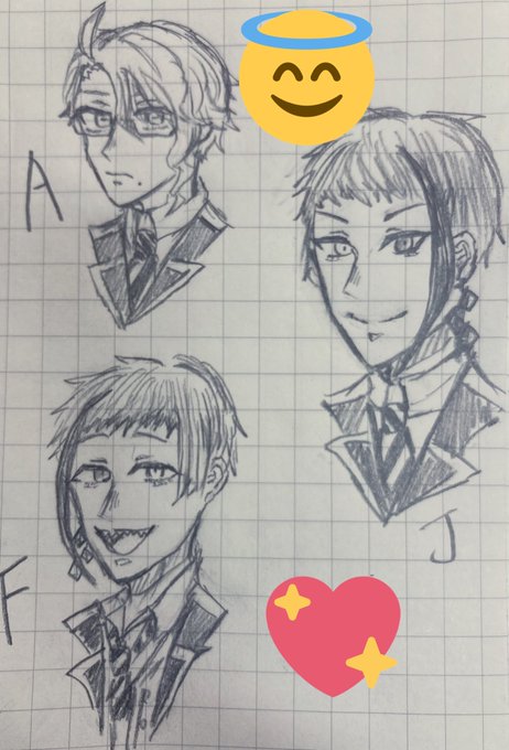 うつむきシリーズ完了!楽しかった😊後で1枚にまとめてみよ💡#ツイステファンアート #twstファンアート #オクタヴィネル寮 #アズール・アーシェングロット #ジェイド・リーチ #フロイド・リーチ #自画自賛 #自己満足