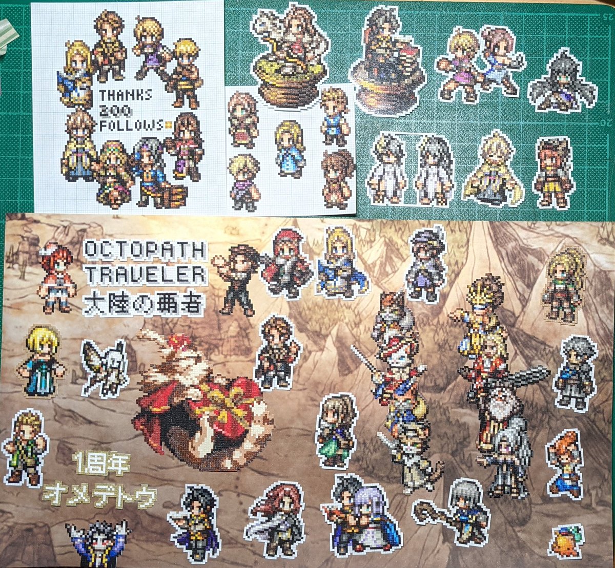新しくフォロワーさんになっていただいた方もいらっしゃるので! 今までのオクトラ作品全部のせです! (もうグチャグチャ) #オクトパストラベラー大陸の覇者 #オクトラ周年祭 #ドット絵 #マスキングテープ #オクトラファンアート