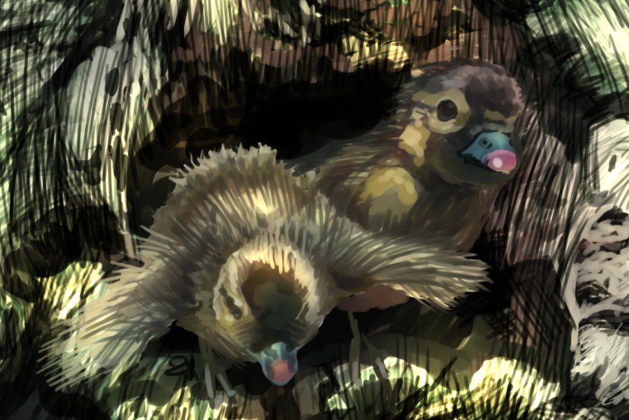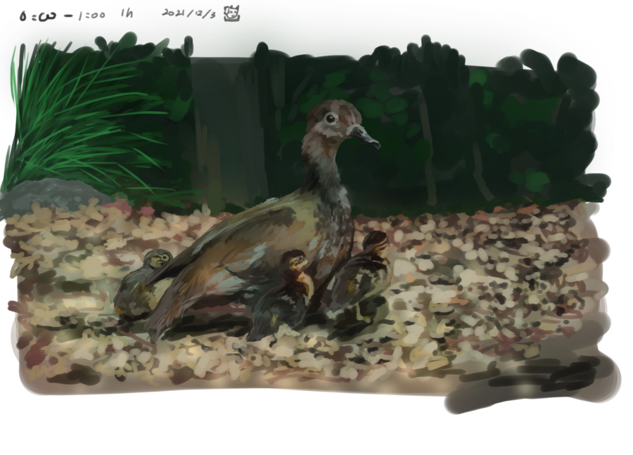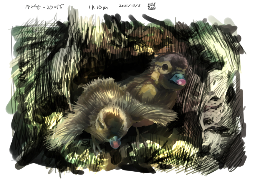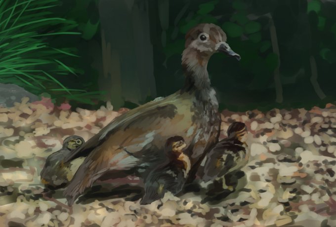 若冲みながら描いたオシドリ しっぽが短いです ポストカードに巧くおさめられないです 色調補正してます #オシドリ #illustration #ペン画 #伊藤若冲は神 #模写 #reproduction #mandarinduck