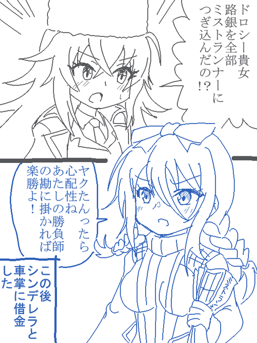 クインズウェイに騎士繋がりでオトフロのシュカの服着せたり。 ヤクたんとドロシーの同じ声同士の絡みが見たいって漫画と、オトフロのキャラがミストレの服を着る絵を描いてました。 もう2周年だしそろそろオトフロコラボ来て欲しいです #ミストレイラスト #ミストレ2周年 #オトギフロンティア