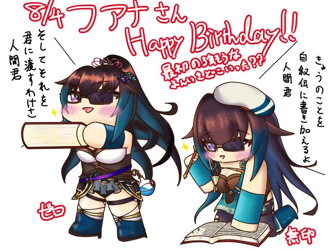 というわけで8月4日はフアナさんの誕生日です。おめでとうございまーす!🎉 最初は強キャラ感あったのに気づいたら自叙伝お姉さんになっててウケてます。後から入ったのに主人公一行になじんでるのもすごいと思います。個性強め() #オトギフロンティア #オトフロ #オトフロ応援イラスト祭