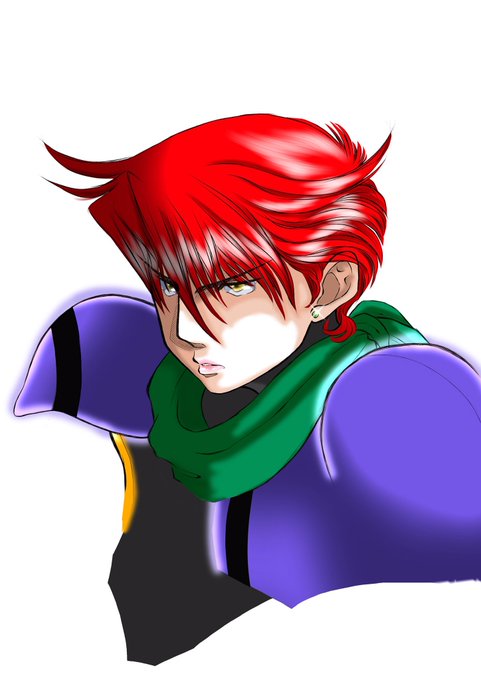 緋色の希望【再掲】 本当はカラフルにキャラ達を塗りたい。でも優子が異邦人だと分かる事が重要なので、優子以外は日本人的色に留めてるんです ↓イラストに添えた文章はこちら pixiv.net/artworks/86270… #仮面ライダーALEBRIJE #オリジナル仮面ライダー #絵描きさんと繋がりたい #ニジイラs #創作イラs