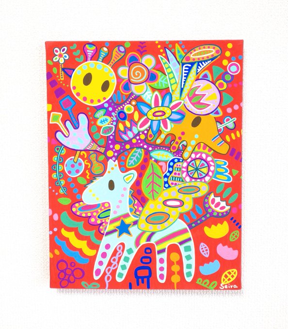おめでとうfor you(F6 アクリル) 動物たち(ペガサス、鳥、象)が花を持ってお祝いに来たところを描きました #オーダー作品 #アート #絵描きさんと繋がりたい #イラスト #イラスト好きな人と繋がりたい #現代アート #アート好きさんと繋がりたい #絵 #art #artwork #artist
