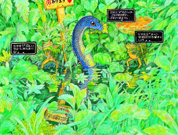 猫のミケランジェロです😆 「見てたん!?」描きました! Instagramにもイラストを投稿してますので是非遊びに来てね😆💕 instagram.com/hrnr0904 #猫のミケランジェロ #おたまじゃくし #カエル #見てる #猫 #池 #怖い #イラスト #絵描きさんと繫がりたい #面白い #可愛い