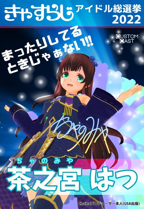#きゃすらじアイドル総選挙ポスター #カスタムキャスト まったりしてたのではない....この『時』の為に『パワー』を溜めていたのだ!!!!!!!!!!💪(`・ω・´💪)(大嘘) アイドルグループ「chaika」のプロデューサー直々登場!!!!!🍵 熱き1票を...私に...!( * ॑꒳ ॑* )