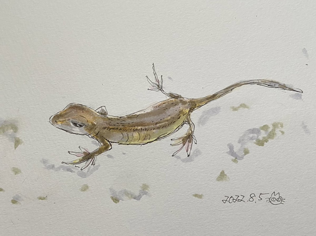 【#カナヘビ仮装大賞】 Day.23 #BOOGER(鼻くそ) カナヘビは鼻くそ出ないので、鼻近くの脱皮殻が付いている感じで 花はダジャレです #inktober #inktober2022 #Halloween #ハロウィン #カナヘビ @inktober